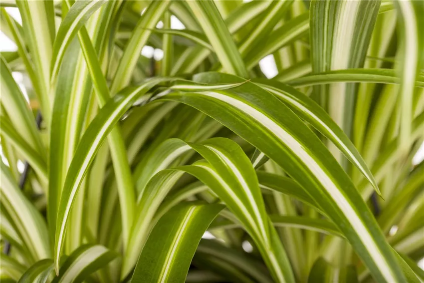 Chlorophytum comosum 'Variegatum' Schon allein die Tatsache, dass Pflanzen die Fotosynthese beherrschen, macht sie für unser Leben so interessant und begehrenswert. Denn so wird das schädliche Kohlendioxid aus der Luft aufgegriffen und zuverlässig in den existenziell notwendigen Sauerstoff umgewandelt. Das funktioniert nicht nur im Freien, sondern genauso gut in geschlossenen Räumen. Besonders im Winter ist diese Fähigkeit nicht zu unterschätzen, da man hier naturgemäß nicht so oft und lange lüftet. Schon allein deshalb ist es wichtig, auch im Schlafräumen nicht auf die grünen Begleiter zu verzichten.