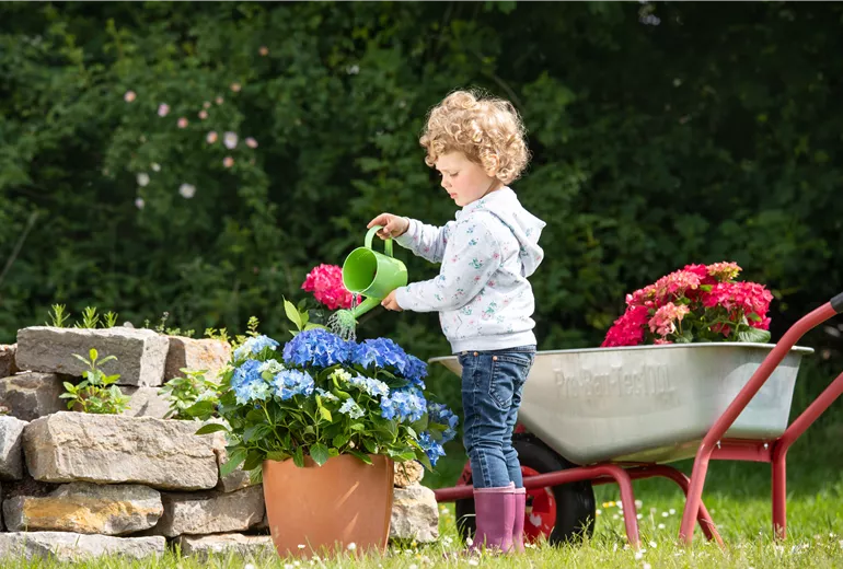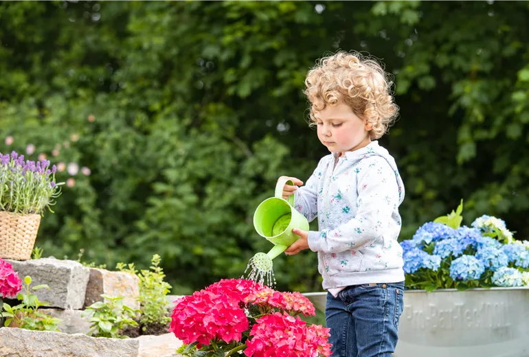 Muttertag - Kind gießt Hortensie