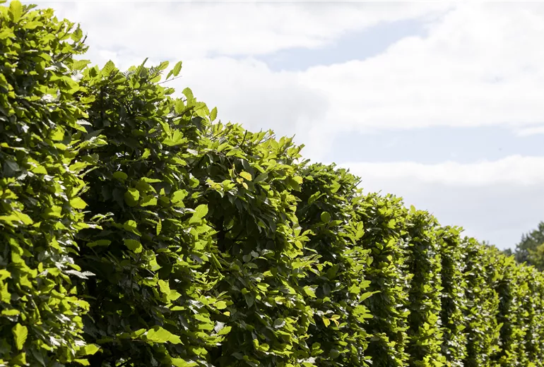 Wer seinen Garten grün und ansehnlich gestalten will, der sollte unbedingt eine Hainbuche pflanzen. Denn dieses Laubgehölz ist etwas ganz Besonderes und zeigt, dass Blätter noch viel mehr können, als einfach nur hübsch und grün an der Pflanze zu hängen. Denn besonders als Hecke sind diese Gehölze beliebt. Warum? Sie sind Laubgehölze, zeigen statt Nadeln wunderschönes Laub und sorgen trotzdem auch im Winter für einen blickdichten Sichtschutz. Wie das geht? Wer eine Hainbuche pflanzen möchte, der holt sich einen wahren Künstler in den Garten. Denn die Pflanze behält ihr Herbstlaub zum größten Teil bis zum neuen Austrieb im Frühjahr an den Ästen. Damit sorgt das braune Laub im Winter für einen zuverlässigen Sichtschutz, obwohl es sich bei der Hainbuche um eine laubabwerfende Art handelt. Ziemlich praktisch, oder? Mit dieser Pflanze wird es auch im Winter nicht langweilig und sie sich selbst in den eigenen Garten zu holen ist gar nicht so schwer. Pflanzen kann man die Hainbuche im Topf das ganze Jahr über, wurzelnackte Pflanzen werden bis spätestens Ende März gepflanzt. Auch für Pflanzen im Topf bietet es sich an, die Pflanzung im Frühjahr oder Herbst vorzunehmen. Denn dann haben die jungen Wurzeln noch ausreichend Zeit, sich auf extreme Wetterverhältnisse wie Trockenheit im Sommer und Frost im Winter vorzubereiten.