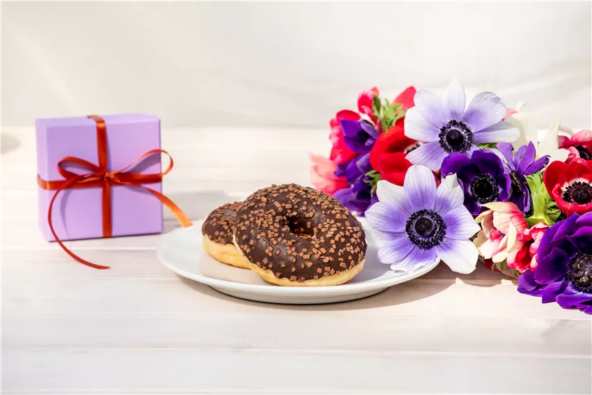 Muttertag - Donuts mit Geschenk und Blumen Blumen sind immer eine besondere Aufmerksamkeit. Und Blumen als Geburtstagsgeschenk treffen immer den richtigen Ton. Vor allem dann, wenn man weiß, was die einzelnen Blumen bedeuten und was man mit ihnen ausdrücken kann. Manchmal sagen Blumen mehr als 100 Worte und diese Eigenschaft kann man sich vor allem am Geburtstag zu Nutzen machen.
