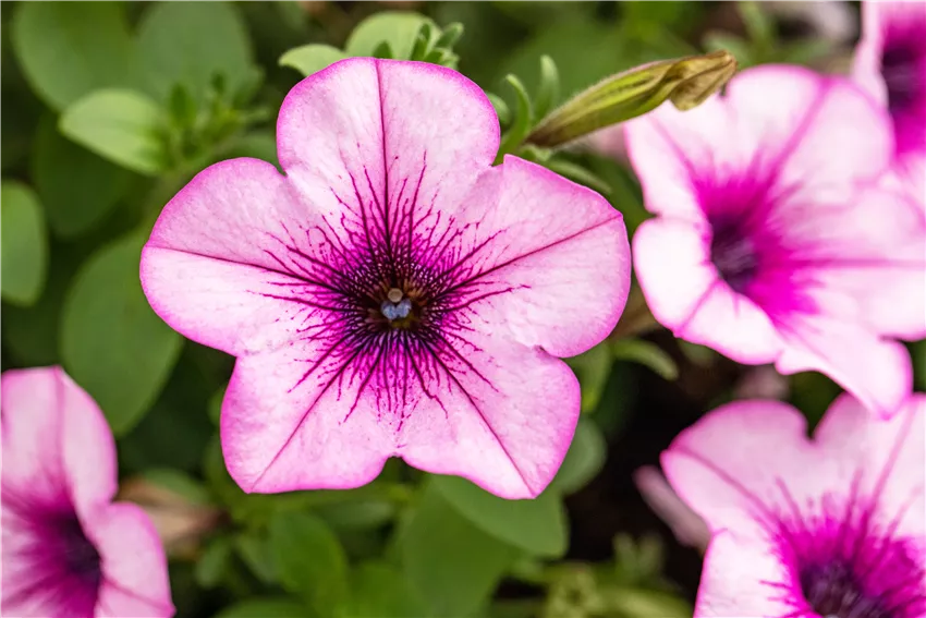 Petunia, rosa Beim Beet und Balkon gestalten kann man auf viele Klassiker zurückgreifen, die jedes Jahr beliebt sind und eine richtig gute Figur machen. Vor allem einjährige Beet- und Balkonpflanzen sind sehr beliebt, weil sie ihre ganze Blühfreudigkeit in eine Saison stecken. Dazu gehören vor allem Petunien, die mit ihren auffälligen Blüten in den unterschiedlichsten Farben daher kommen. Stehend sind sie ideal für Pflanzgefäße geeignet, aber auch hängend sorgen sie in Blumenampeln oder Balkonkästen für Highlights. Auch die pflegeleichten Zauberglöckchen, die Petunien sehr ähnlich sehen, sind beliebte Kandidaten beim Beet und Balkon gestalten. Weitere Klassiker sind Glockenblumen und Begonien. Zusammen mit Geranien, Margeriten und Kapkörbchen machen sie auch im Beet eine gute Figur und sind deshalb beim Beet und Balkon gestalten besonders beliebt. Auch sie gibt es in den unterschiedlichsten Farben von einfarbig bis mehrfarbig, gefüllt oder ungefüllt, hängend oder stehend. Der Fantasie sind bei der Gestaltung keine Grenzen gesetzt und obwohl die Pflanzen nur einjährig sind, versüßen sie ihrem Besitzer den Sommer.