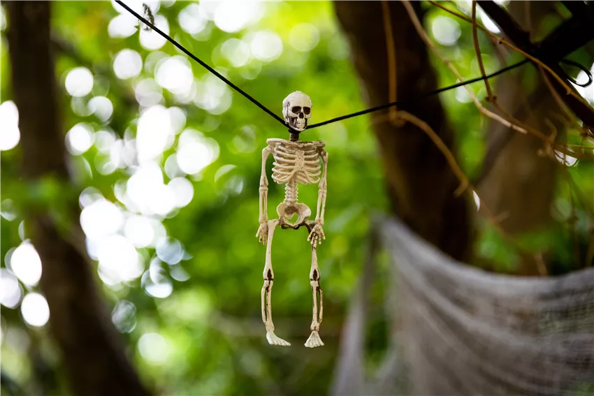 Nicht nur das Dekorieren und Bepflanzen ist für den Garten zu Halloween wichtig. Auch die Vorbereitung auf den danach folgenden Winter sind wichtig und sollte nicht vergessen werden. Wie gut, dass so ein Laubhaufen zu Halloween passt und den Spaß im Garten mit einem gruseligen Kostüm noch ein bisschen mehr steigert. Hier kann man sich hervorragend verstecken und auf den nächsten Angriff oder Erschrecker warten. Und ein Laubhaufen bietet gleichzeitig Schutz für Igel und Co. Außerdem sollte vor allem das Laub vom Rasen entfernt werden, damit die Halme atmen können und nicht eingehen. So kann man das Angenehme mit dem Nützlichen verbinden und den Garten winterfest machen und gleichzeitig für die passende Atmosphäre im Garten zu Halloween sorgen. Spinnenweben dürfen dabei übrigens auch erstmal hängen bleiben, sie liefern den Krabbeltieren nämlich Nahrung und sehen wunderschön aus, wenn der Morgentau auf ihnen liegt. Und ganz nebenbei sind sie natürlich unfassbar gruselig und passen perfekt in die Halloweenstimmung im eigenen Garten.