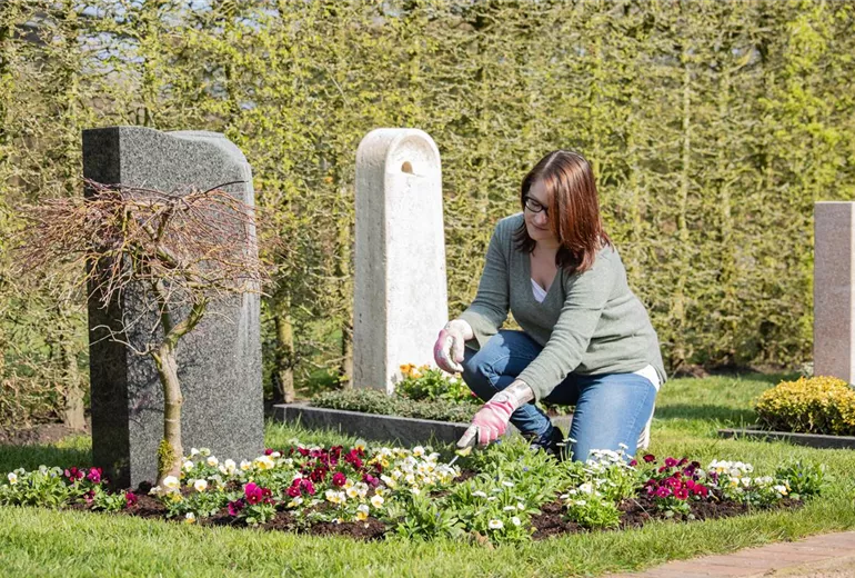 Blumen auf dem Grab zeigen Liebe und Zuneigung und sind ein Zeichen der Lebenden, dass die Verstorbenen nie in Vergessenheit geraten. Deswegen kann ein stilvoll bepflanztes Grab eine Gedenkstätte sein, an der man sich gerne an die geliebten Menschen erinnert.