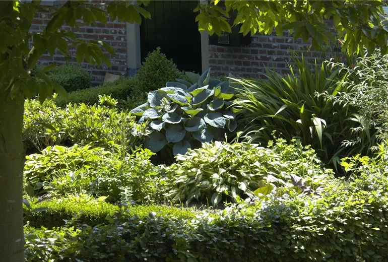 Die Blätter der Blattschmuckpflanzen können aber nicht nur besonders groß, sondern auch besonders bunt werden. Der Star unter den Blattschmuckpflanzen ist die Funkie. Sie zeigt sich mit gelbbunten, blauen oder grünen Blättern und weißen Rändern. Funkien sind für den Halbschatten besonders gut geeignet, weil ihre hellen Blätter in der Sonne schnell verbrennen würden. Kombiniert mit ein paar Ziergehölzen und Bodendeckern verwandet die Funkie schattige Plätze in farbenfrohe Ecken. Nicht zu unterschätzen sind auch die verschiedenen Nesselarten. Eine richtig gute Figur macht dabei die Schwarznessel. Sie liebt nicht nur die Sonne, sie überzeugt auch mit Blättern in einzigartigen Farben und Formen. Die oft unterschätzte Taubnessel steht ihr da aber in nichts nach und gehört ebenfalls zu den beliebten Blattschmuckpflanzen. Für den Auftritt im Hintergrund eignet sich der Wunderbaum hervorragend. Seine ganz besonderen Blätter bringen Farbe ins Spiel und machen den Garten im Sommer noch farbenfroher, als er ohnehin schon ist.