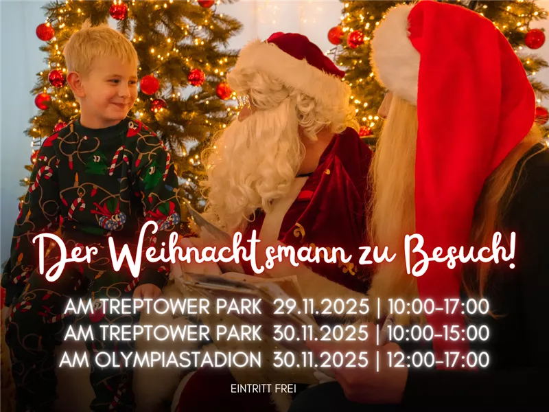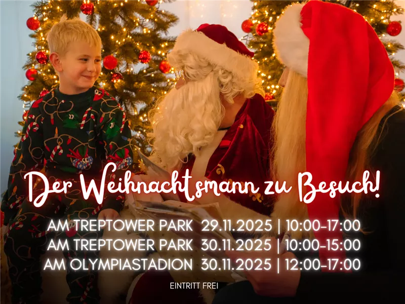 Kinder können den Weihnachtsmann persönlich treffen, Fotos machen, ihre Wünsche erzählen und kleine Überraschungen erhalten. In Treptow und am Olympiastadion sorgt er an diesem besonderen Wochenende für strahlende Gesichter, festliche Stimmung und unvergessliche Momente für die ganze Familie.