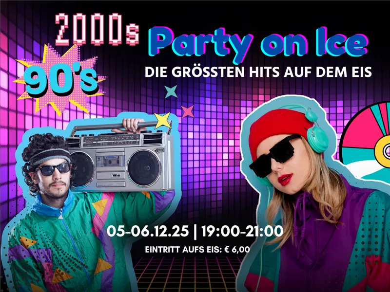 Die bunten Beats der Jahrtausendwende treffen auf glitzernde Lichter und gute Laune. Ob ihr mitsingt, tanzt oder einfach übers Eis gleitet, hier ist Stimmung garantiert!